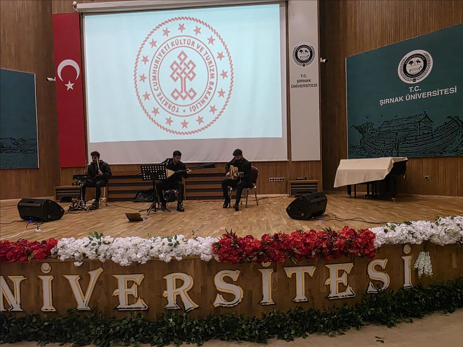 Şırnak Valiliği İl Kültür ve Turizm Müdürlüğü tarafından, Şırnak Üniversitesi 15 Temmuz Kültür ve Kongre Merkezinde 62. Kütüphane Haftası kapsamında bir etkinlik düzenlendi. Etkinlikte, Güzel Sanatlar Fakültesi öğrencileri tarafından mini bir konser sunuldu. Yoğun katılımın olduğu program, sanat dolu anlara sahne oldu. Programın devamında etkinliğe katkı sunan öğrencilere plaket takdim edildi. Etkinlik, emeği geçenlere teşekkür edilmesiyle sona erdi.